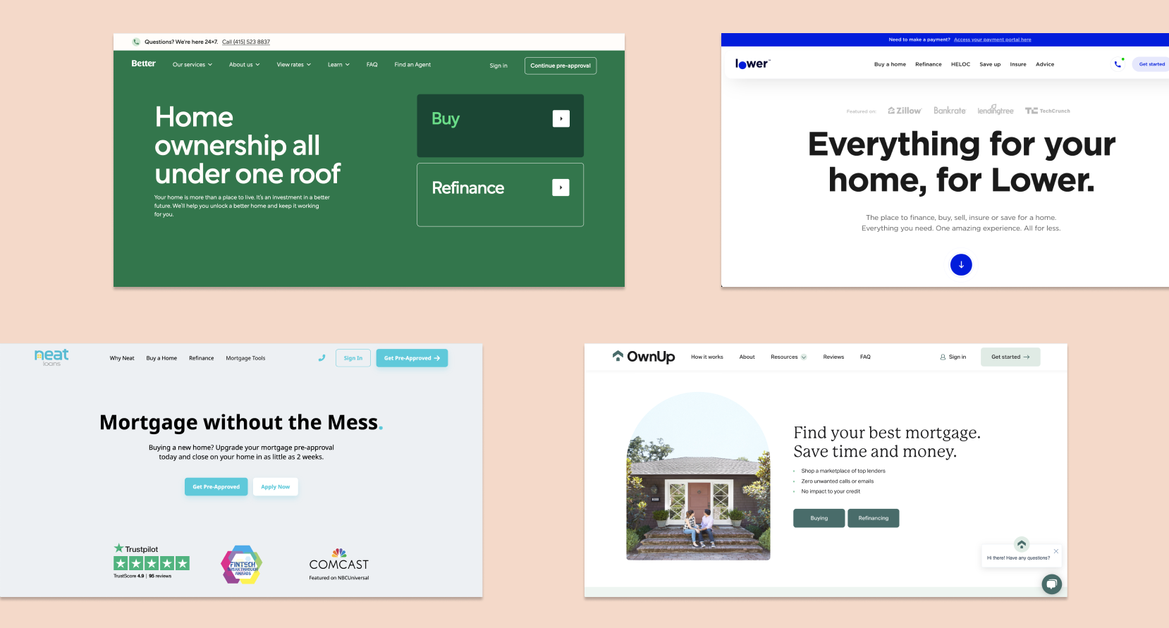 I started the project by doing a competitive audit of our fellow mortgage company competitors, such as Better and Own Up.
