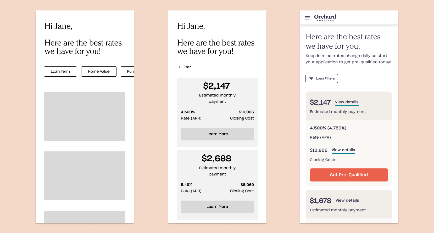 At the end of the intake form, the user can schedule a quick call with one of Orchard's loan officers to go over their rate options. Until that appointment, the user has no transparency into their rate options.